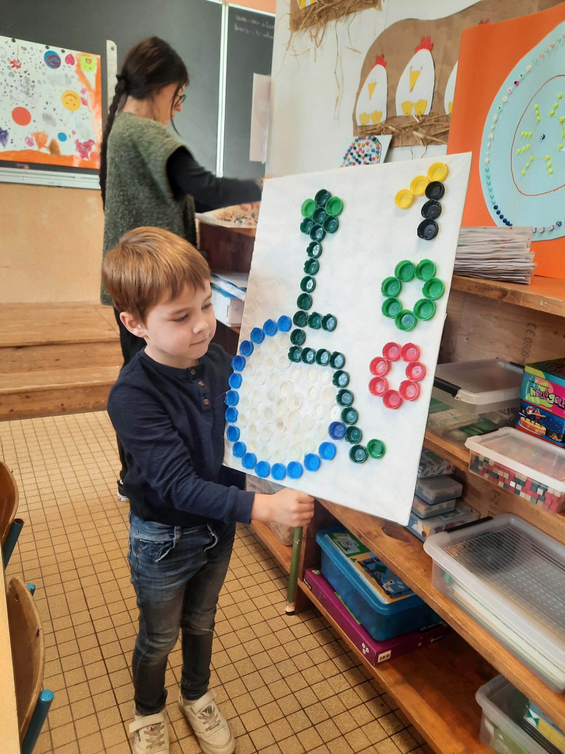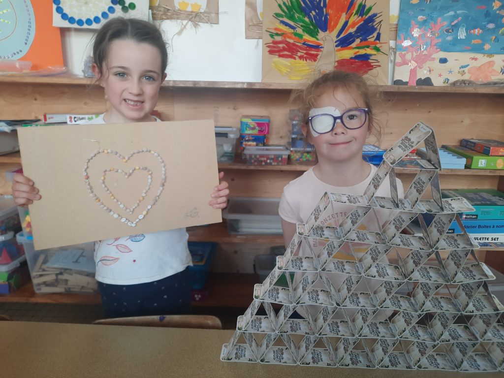 Les enfants ont ensuite présenté les collections de 100 objets qu’ils avaient préparées à la maison : figurines, coquillages, plumes… Une belle variété de créations, toutes plus originales les unes que les autres.