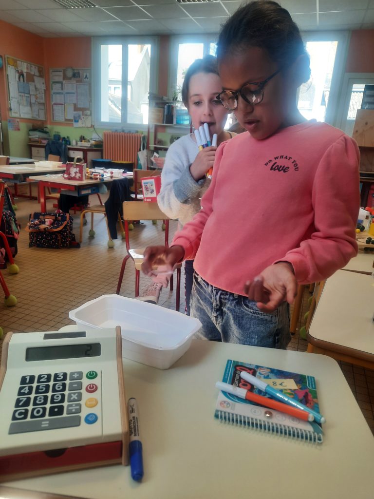 Atelier de marchande pour apprendre à utiliser 100 euros,