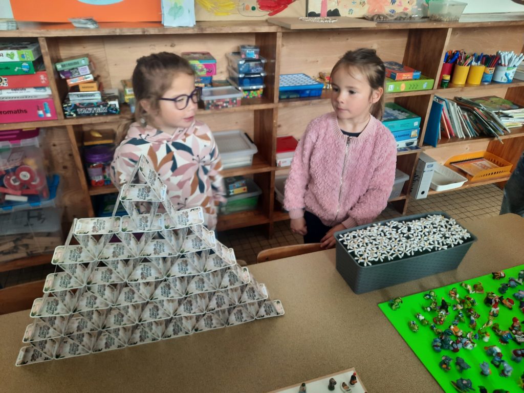 L’après-midi plusieurs 3 ateliers mathématiques ont permis aux élèves de CP de manipuler ce nombre impressionnant :