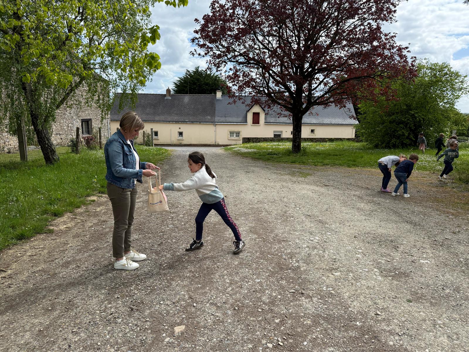 Et pour finir cette journée festive, une chasse aux 100 œufs a été organisée dans le pré de l’école, en lien avec la fête de Pâques toute proche !