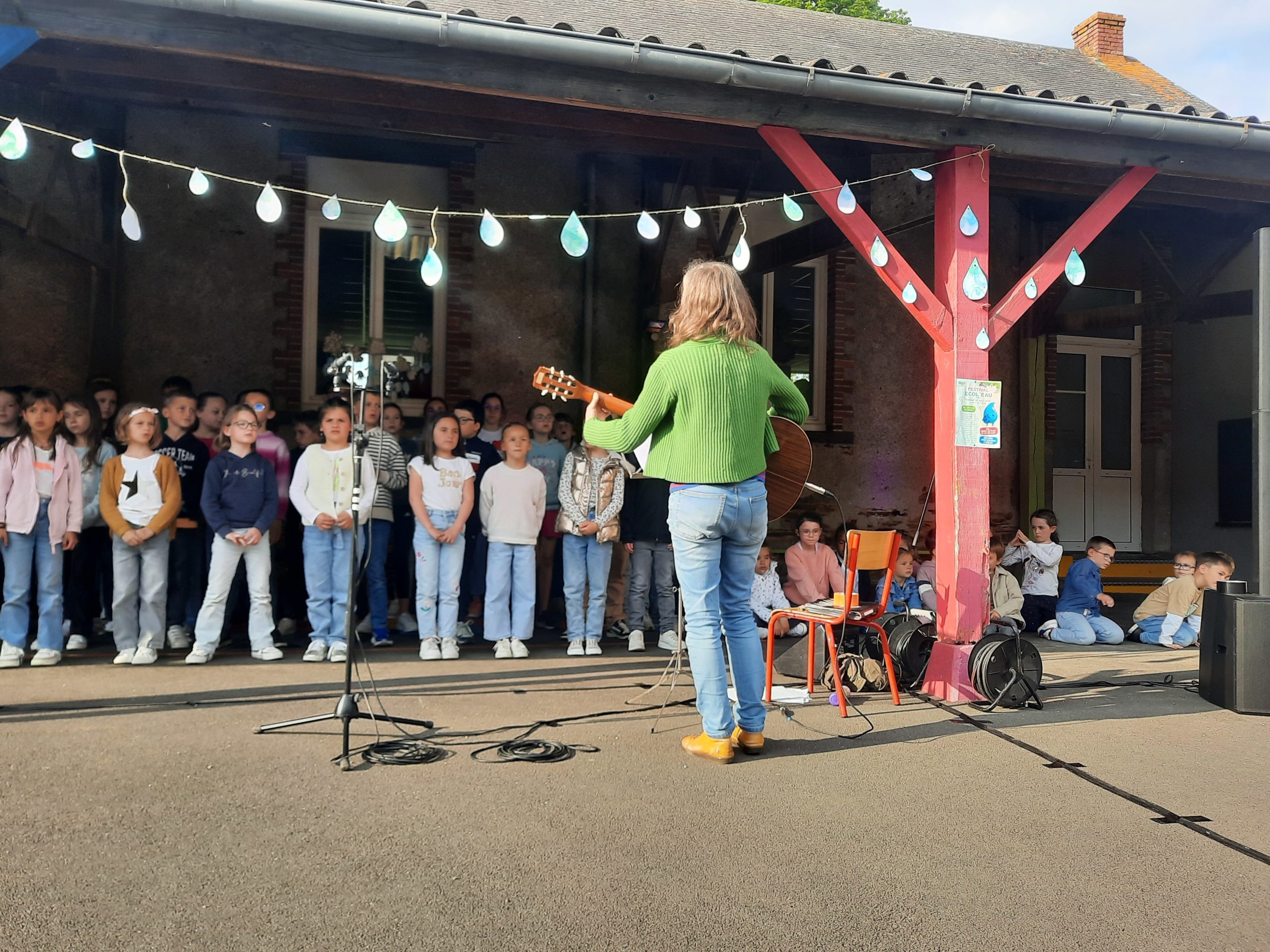 Lors du festival Écol’Eau, les élèves ont présenté avec fierté leur spectacle musical devant les familles. Ils ont également proposé un memory sonore autour des bruits de l’eau, ainsi qu’un clip vidéo réalisé par les élèves des classes de CE et CM. Un beau travail d’équipe et de création !