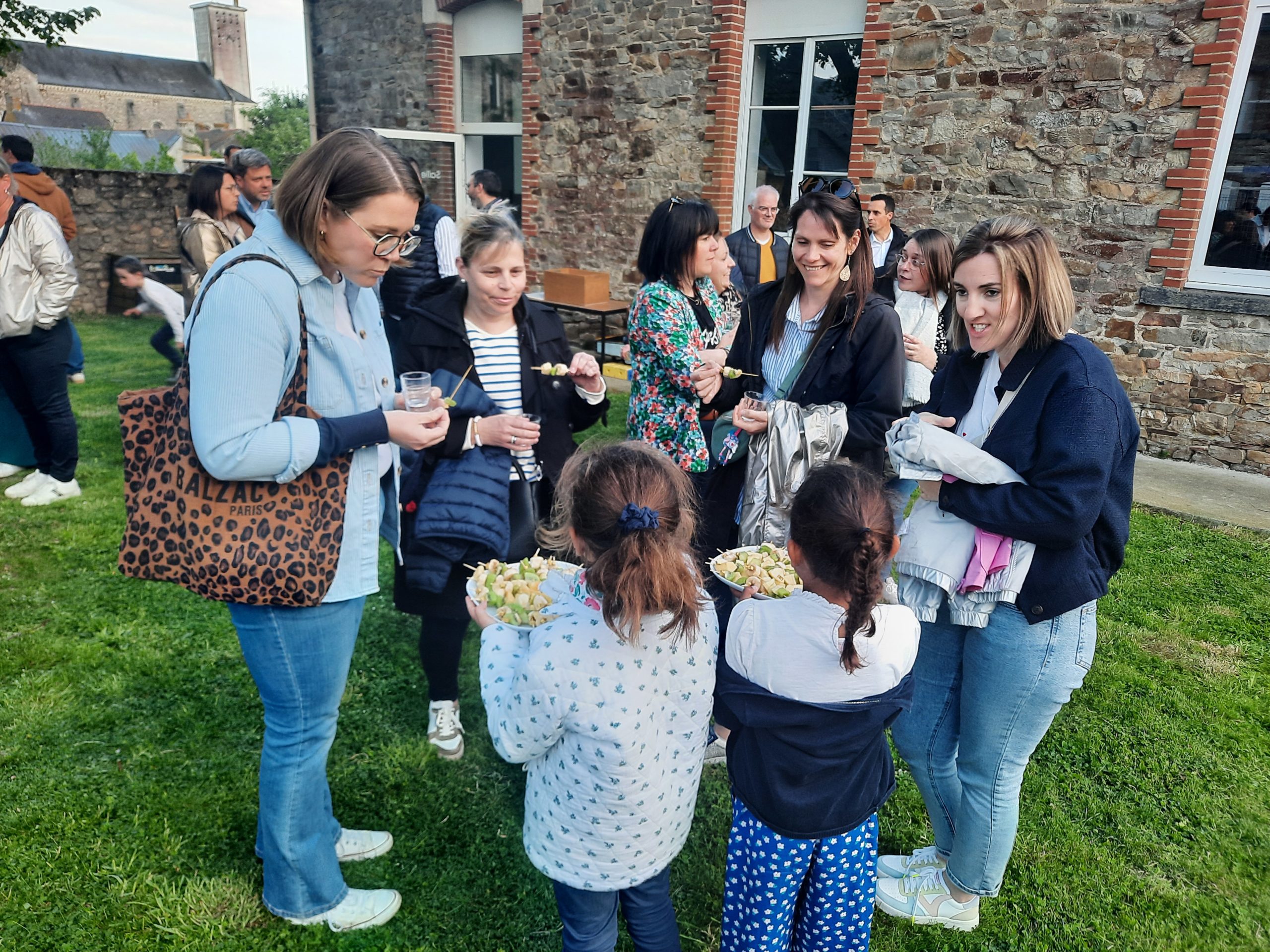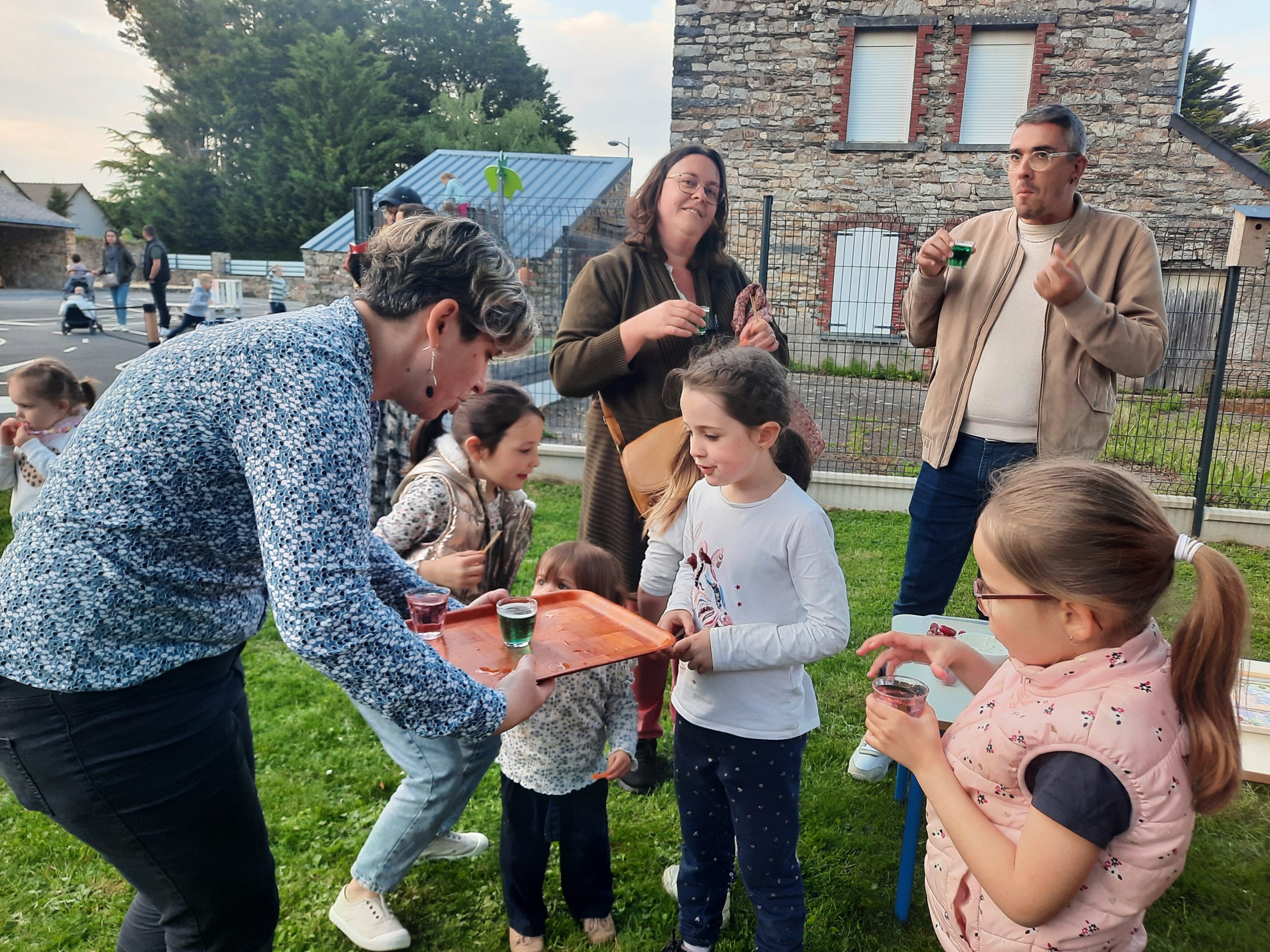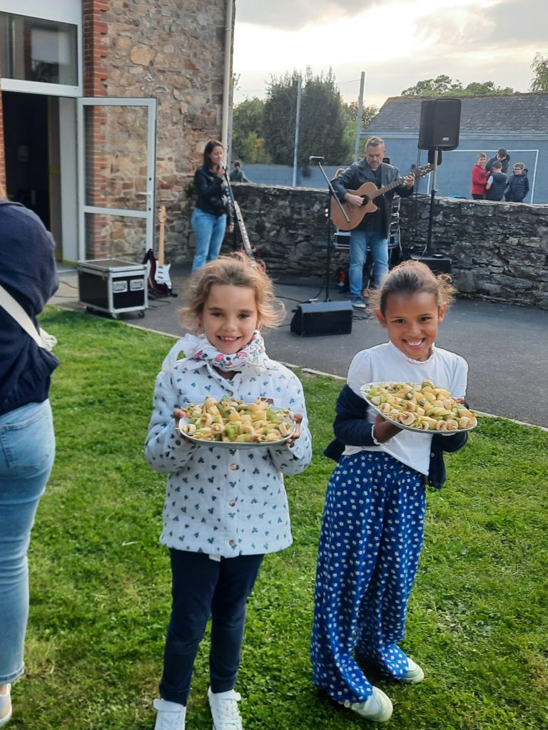 La soirée s’est poursuivie autour d’un apéritif dînatoire entièrement préparé par les enfants : cakes salés, brochettes de fruits, crudités, citronnade et bar à diabol’eau 😉 ont régalé petits et grands. Le tout a été servi sous notre grand tilleul, transformant l’espace pelouse en un lieu chaleureux et festif.