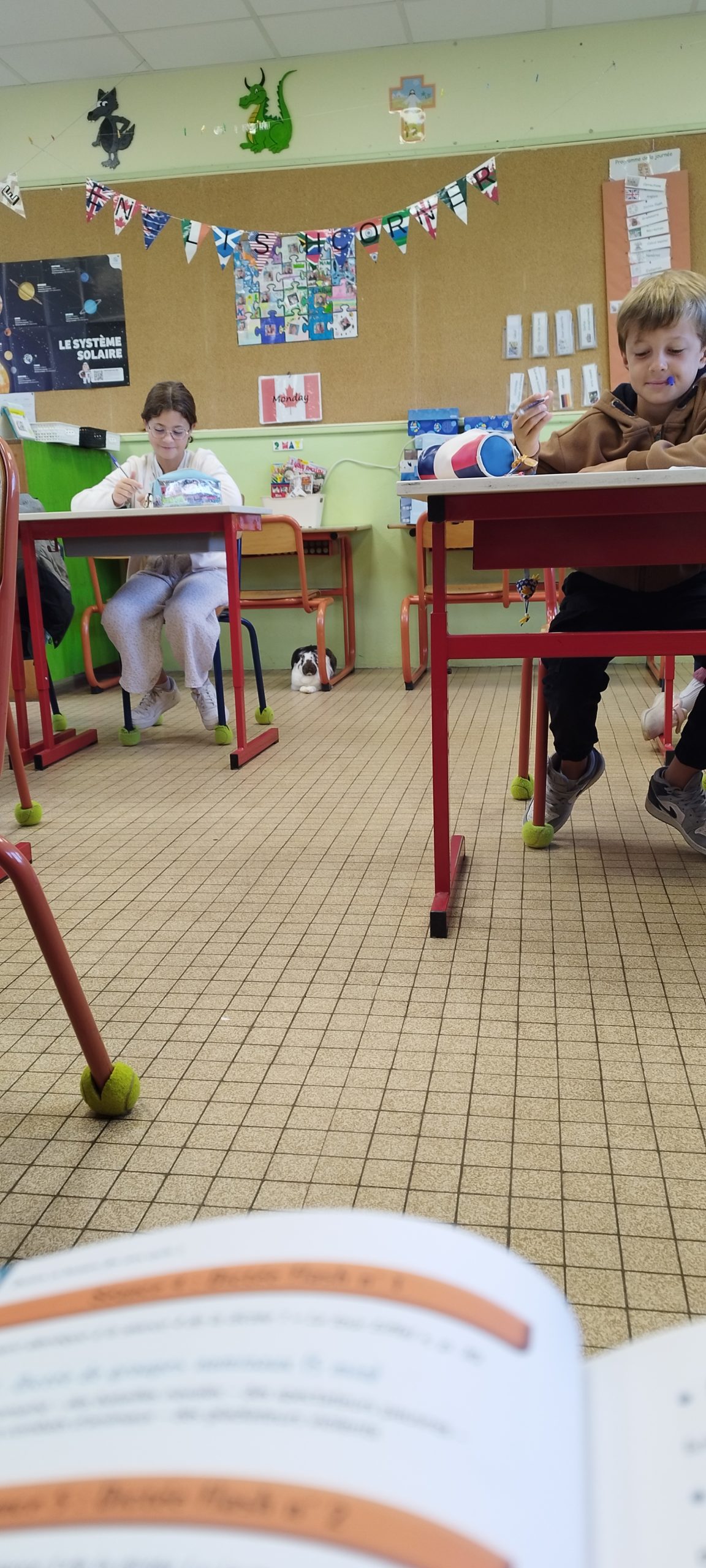 C’était le premier jour de classe pour Georges. Il était très heureux de revoir les enfants et c’était visiblement réciproque. Il n’a pas manqué de caresses et de gratouilles….