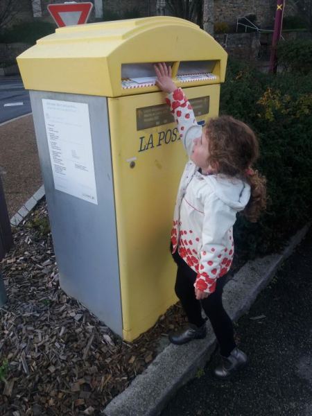 Le vendredi 20 décembre, nous nous sommes donc rendus à la boite aux lettres de la Poste (en fredonnant des chants de Noël!) pour poster tout notre courrier.