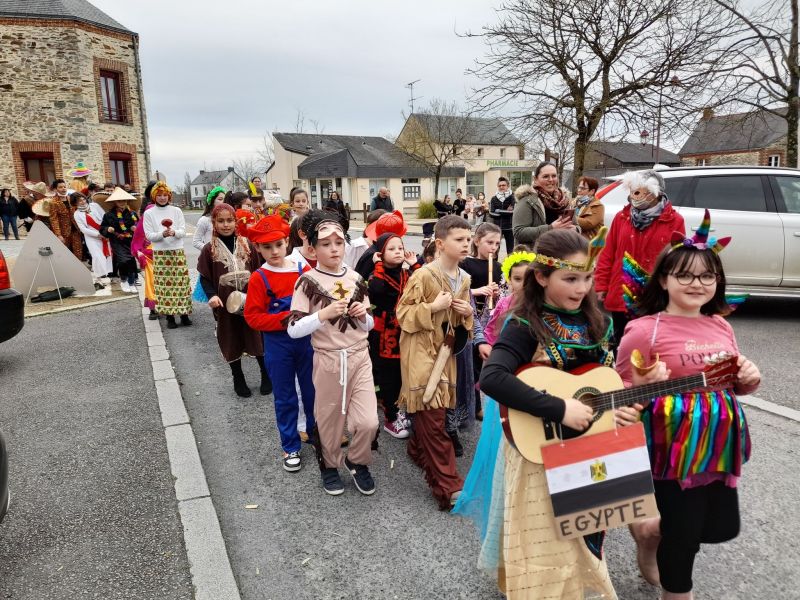 Mardi 1er mars, pour fêter mardi gras, tous les enfants ont enfilé leur déguisement et sont partis défiler dans le bourg d’Erbray! Le carnaval était placé sous le thème des “peuples du monde” en lien avec notre projet d’école. De l’Egypte, aux Antilles, en passant par la Chine et le Mexique… beaucoup de pays étaient représentés pour ce défilé haut en couleurs! De retour à l’école, la fête a continué… Chaque enfant a pu manger un bottereau et participer à une grande danse collective!