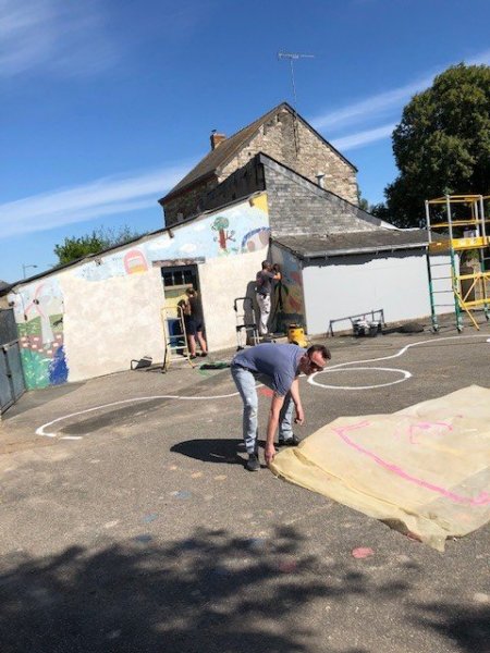 Les enfants sont en vacances mais l’école n’est pas complètement endormie… En effet, une poignée de parents se sont rendus disponibles les week-ends pour effectuer de petits et gros travaux: rangement, tri, nettoyage des façades, élagage, peinture… Un grand bravo à eux!