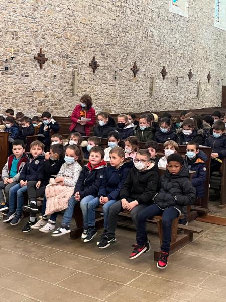 En ce début de carême, tous les élèves se sont rendus à l’église pour une célébration des cendres animée par le Père Patrice Eon.Cette célébration était placée sous le signe du CŒUR… Durant cette période de carême, nous allons “dépoussiérer nos cœurs”, “changer nos cœurs”, “ouvrir nos cœurs à la joie”… Toutes ces expressions ont été reprises et écrites sur des cœurs que nous avons laissés à l’église. Au cours de la célébration, le Père Patrice a apposé des cendres sur le front des enfants qui le souhaitaient. Avant de quitter l’église, chaque élève a choisi un petit cœur qu’il pourra accrocher chez lui.