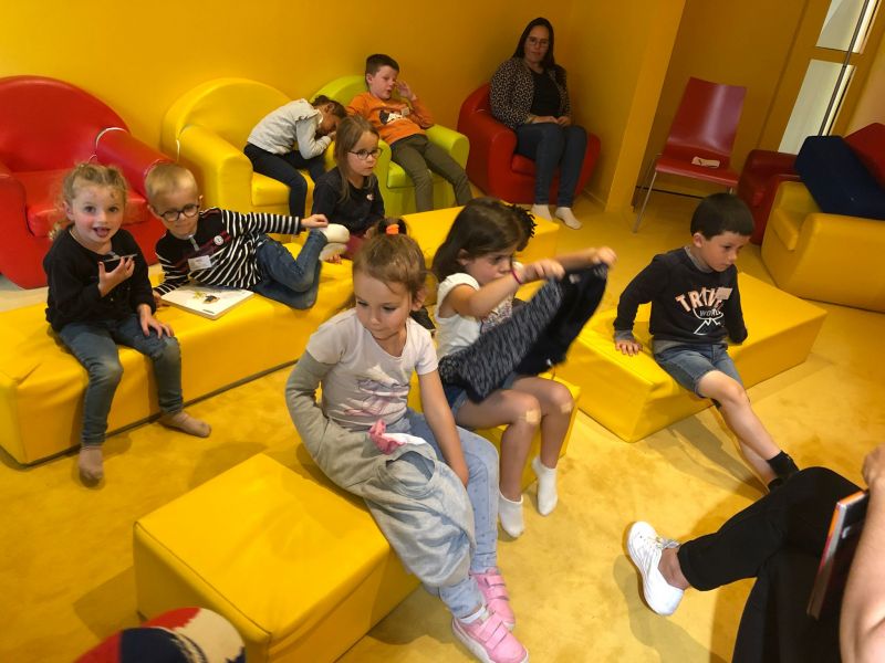 Le pique nique au sein du château a permis à tous de recharger les batteries afin de poursuivre le périple de l’après-midi avec entrain! La journée s’est poursuivie avec la découverte de la médiathèque, son fonctionnement, les différents espaces, un temps de lecture libre puis une lecture offerte réalisée par une personne de la médiathèque autour du thème du moment en classe: l’Asie. Les enfants ont pu apprécier ce bâtiment et étaient heureux de découvrir l’espace lecture qui leur est dédié à la médiathèque.