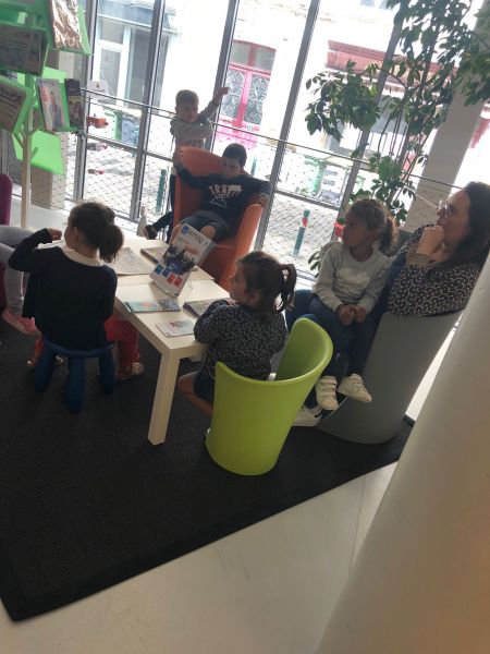 Le pique nique au sein du château a permis à tous de recharger les batteries afin de poursuivre le périple de l’après-midi avec entrain! La journée s’est poursuivie avec la découverte de la médiathèque, son fonctionnement, les différents espaces, un temps de lecture libre puis une lecture offerte réalisée par une personne de la médiathèque autour du thème du moment en classe: l’Asie. Les enfants ont pu apprécier ce bâtiment et étaient heureux de découvrir l’espace lecture qui leur est dédié à la médiathèque.